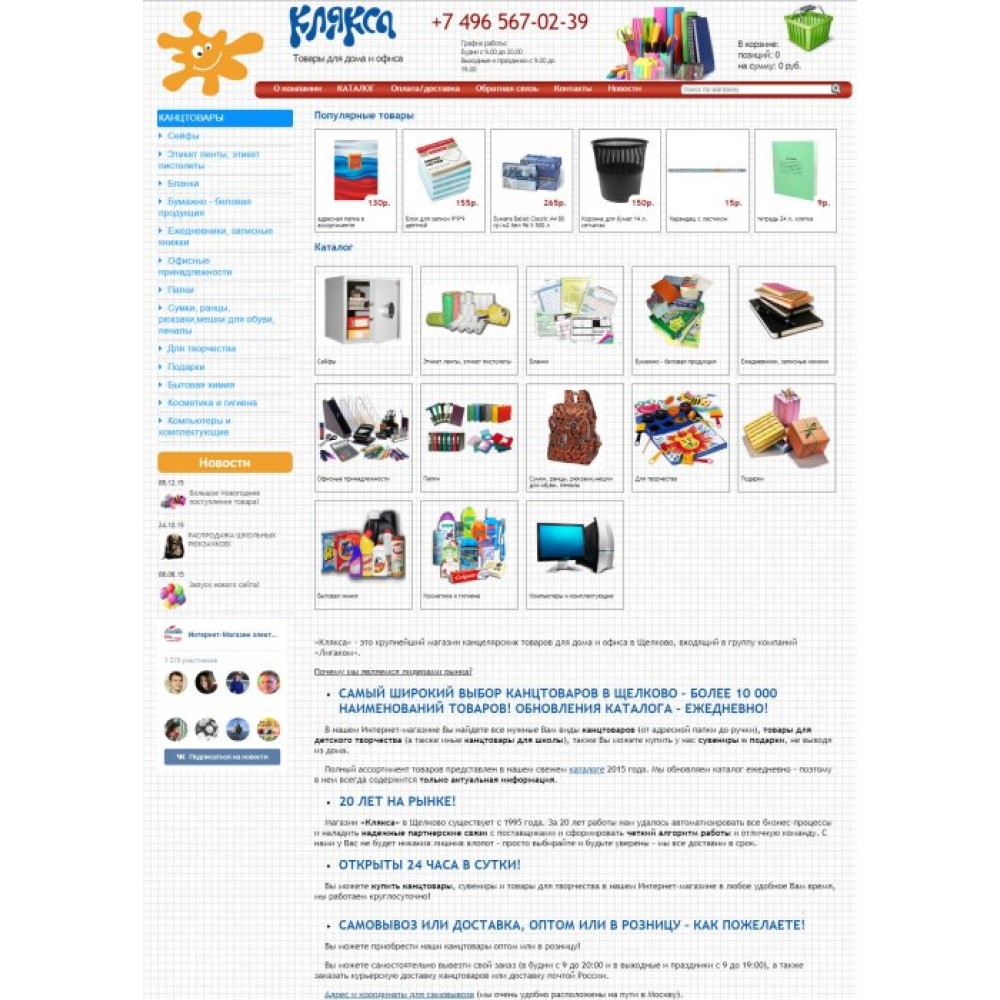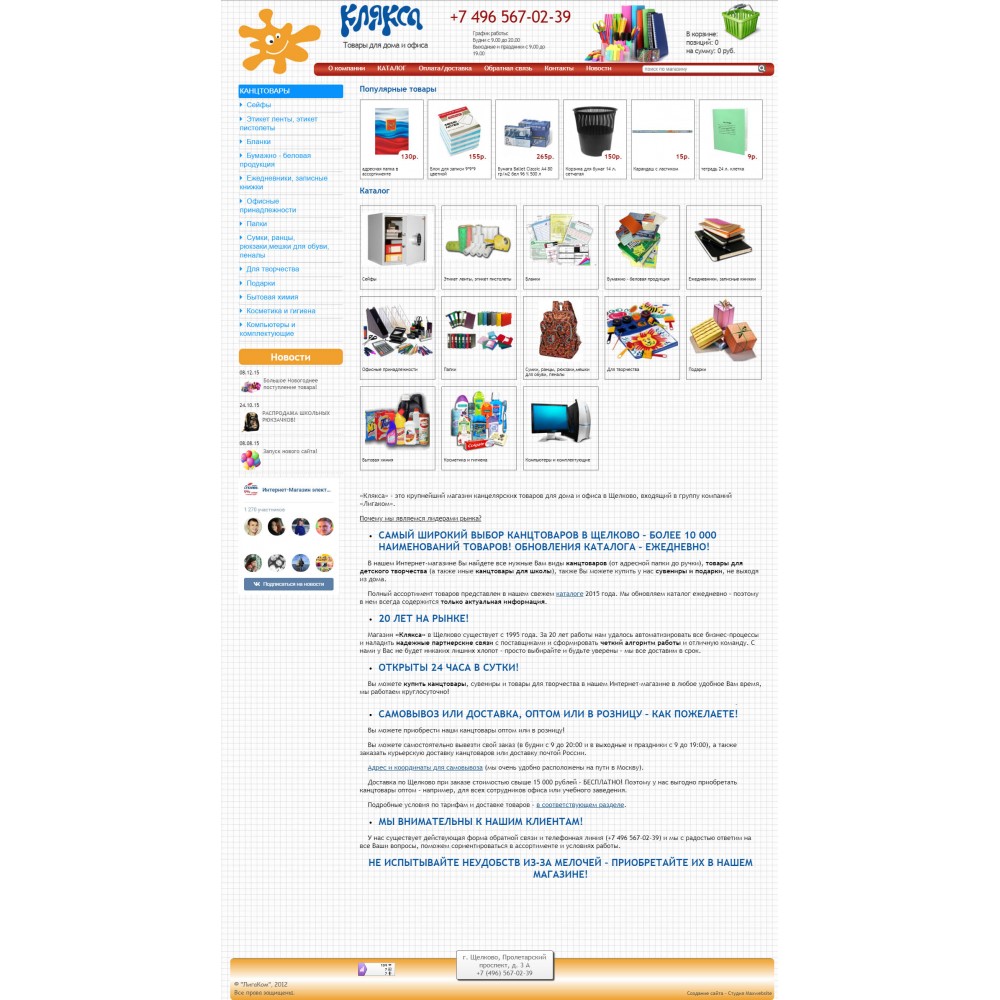 Интернет-магазин канцелярских товаров Клякса от веб-студии Максвебсайт г. Североуральск