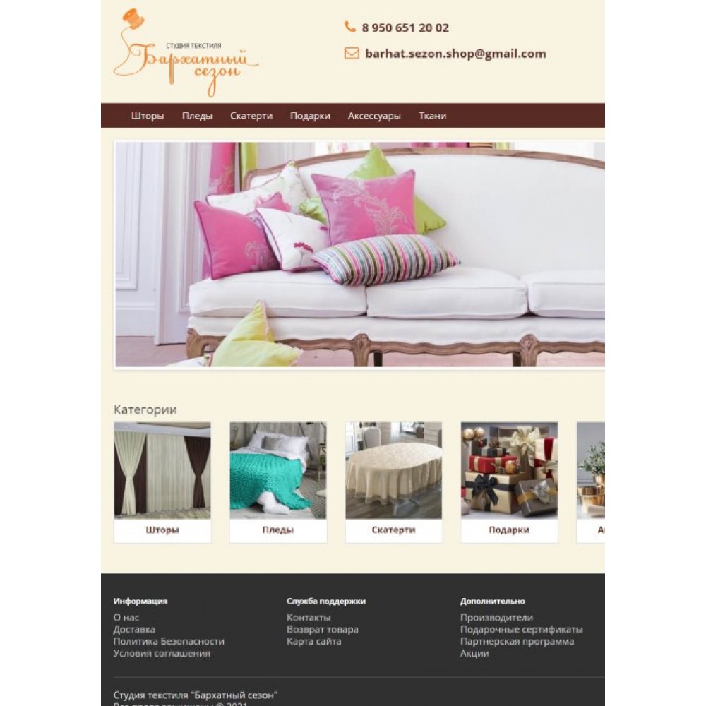 Интернет-магазин студии текстиля "Бархатный сезон" от веб-студии Максвебсайт г. Североуральск