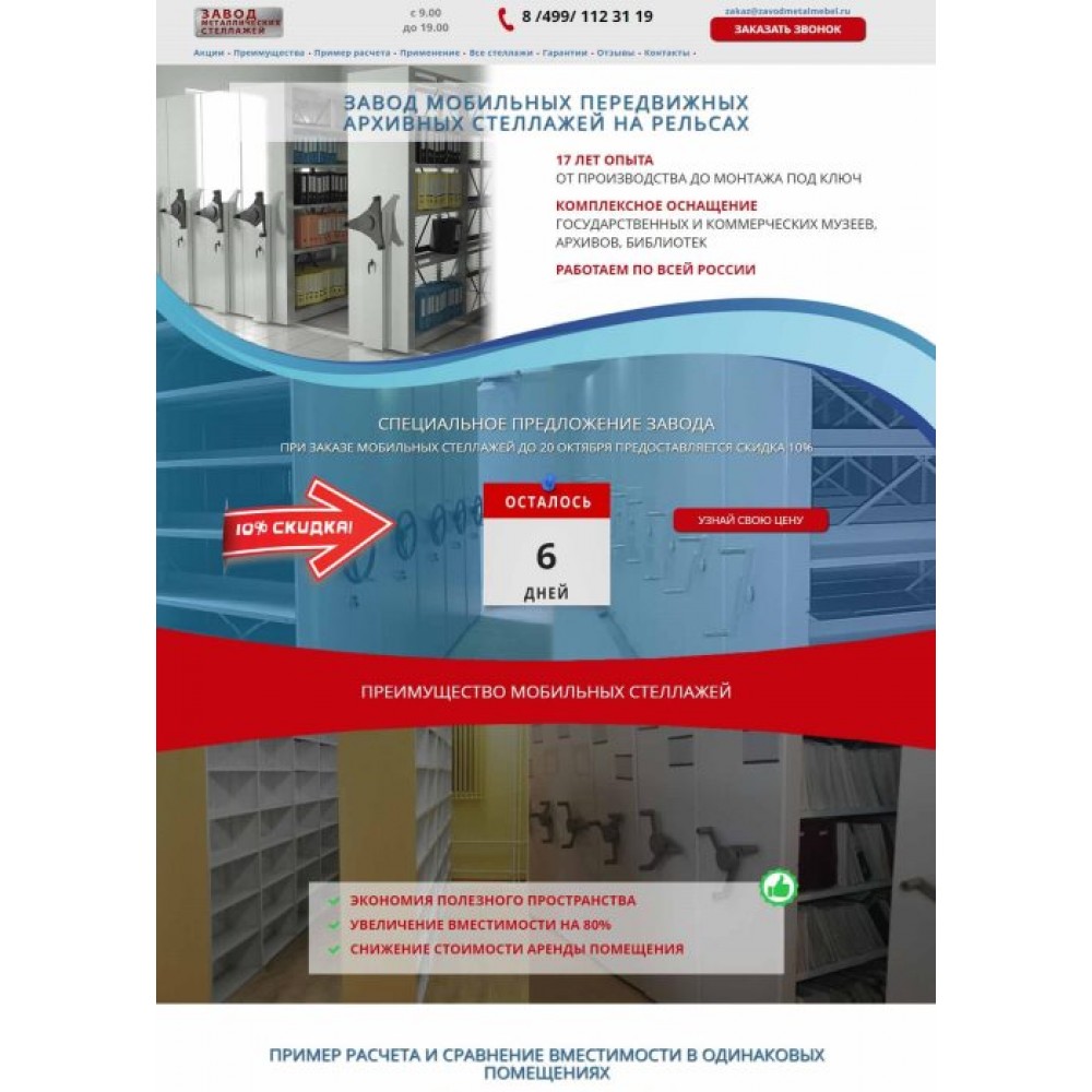 Рекламная страница (лендинг) завода мобильных стеллажей от веб-студии Максвебсайт г. Североуральск