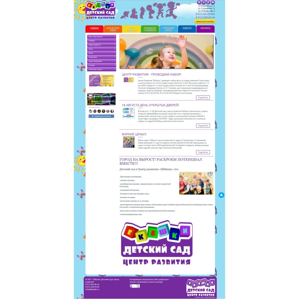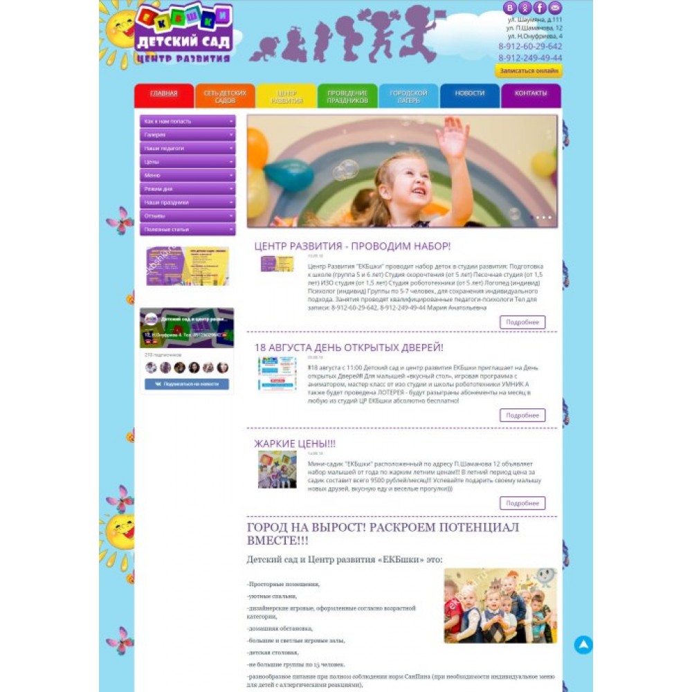 Рекламный сайт сети детских садов Екбшки от веб-студии Максвебсайт г. Североуральск
