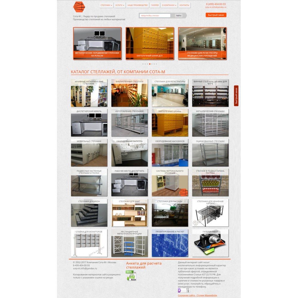 Сайт каталог, по продаже металлических стеллажей, от веб-студии Максвебсайт г. Североуральск