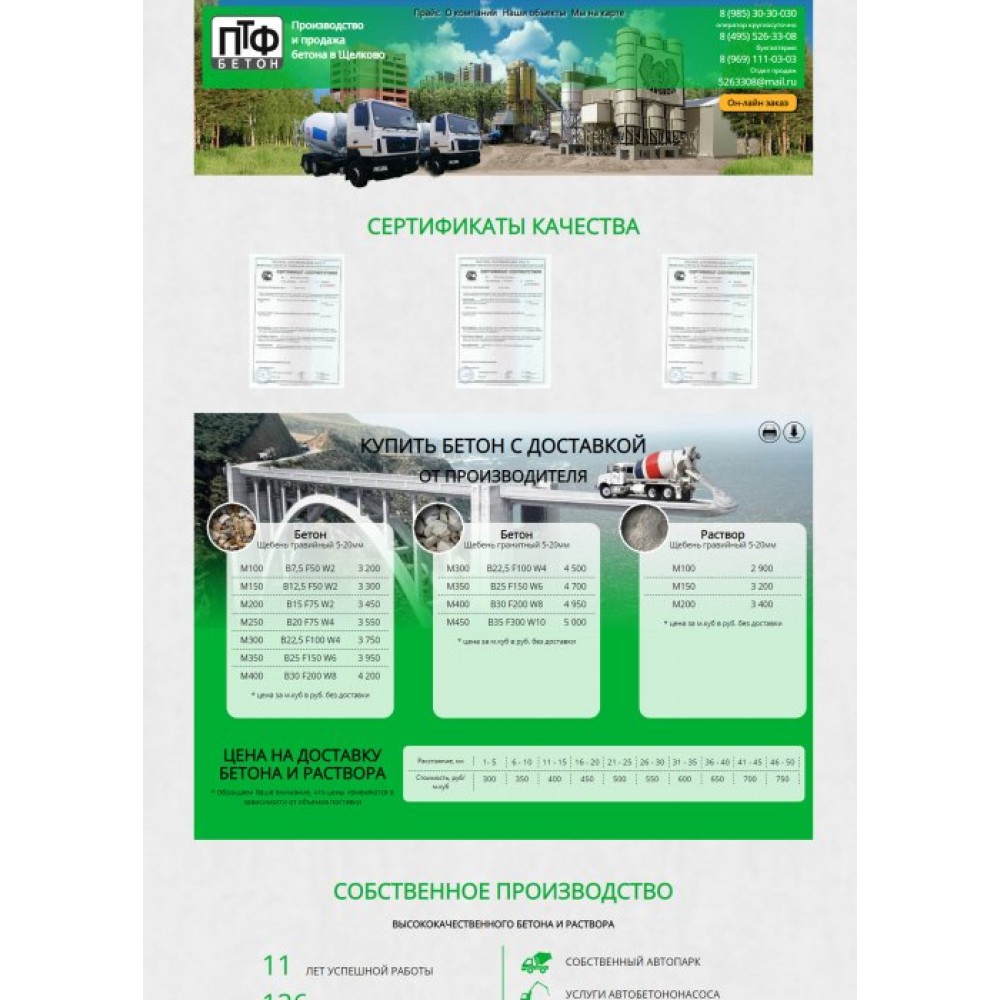 Наша компания предлагает услуги по разработке и созданию сайтов-лендингов, специализирующихся на продаже бетона. Мы сделаем все, чтобы ваш сайт был высокоэффективным инструментом, привлекающим потенциальных клиентов и увеличивающим вашу прибыль.