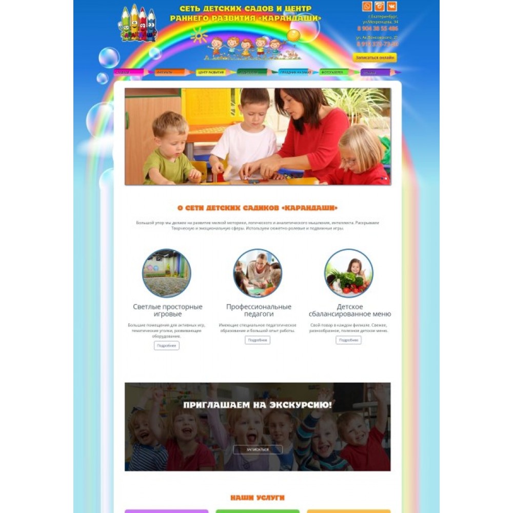 Сайт сети частных детских садиков Карандаши от веб-студии Максвебсайт г. Североуральск